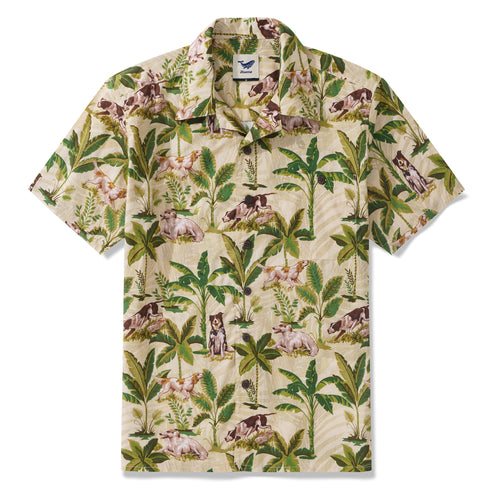 1940s Hawaiian Shirt For Men TIKI Print Cotton Button Down Short Sleeve Aloha Shirt